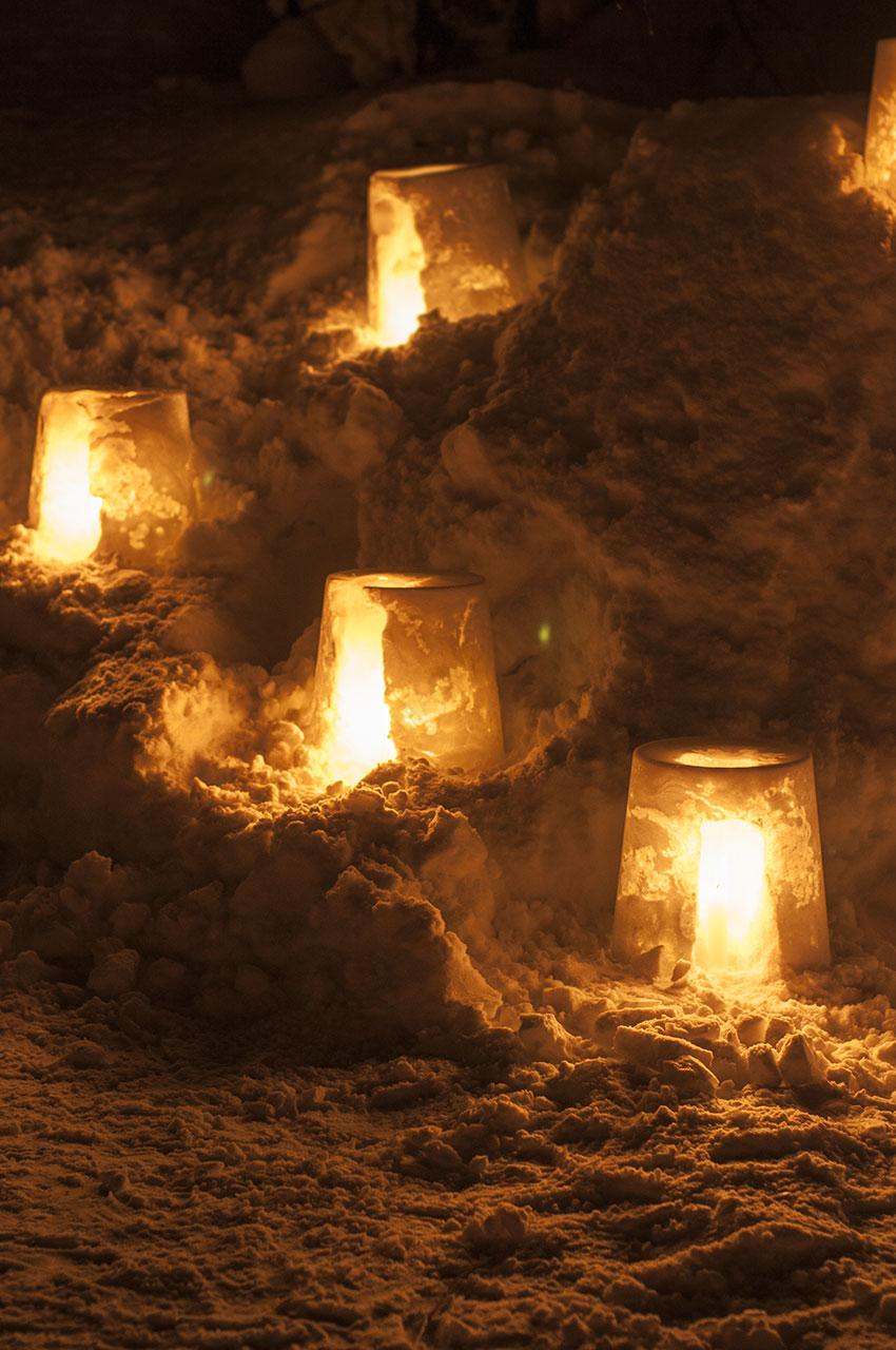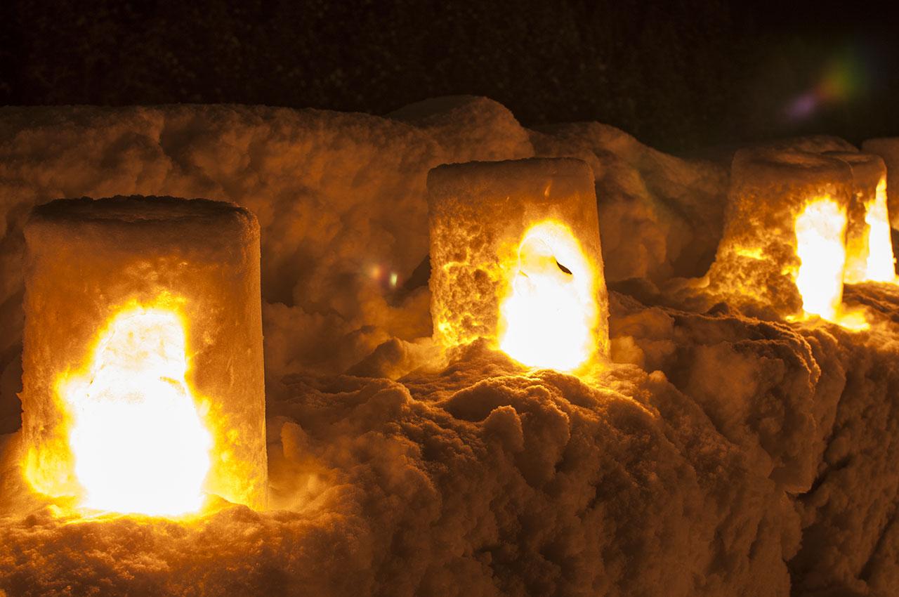 「幻灯」は川口集落から滝ノ下集落まで続く道路の雪壁に、十数キロメートルにわたって小さな雪洞が掘られ、夜にはろうそくの火が灯されるイベント。