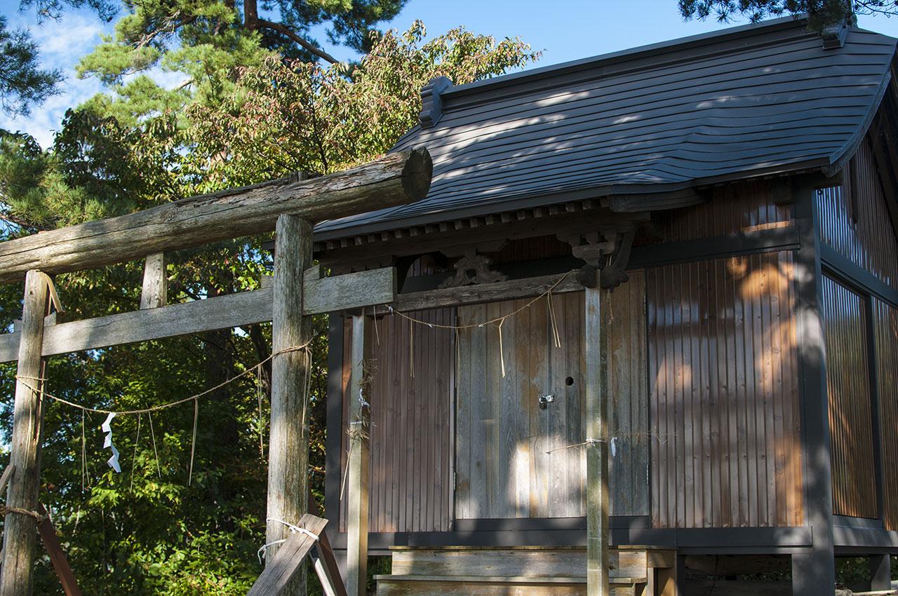 登山道を登りつめると眼下に横手平野が見渡せる神社があるのですが、こちらは山頂ではありません。神社を引き返した横道からさらに上に道は続きます。山頂は倉狩沼やいこいの森から繋がる別ルートに繋がります。