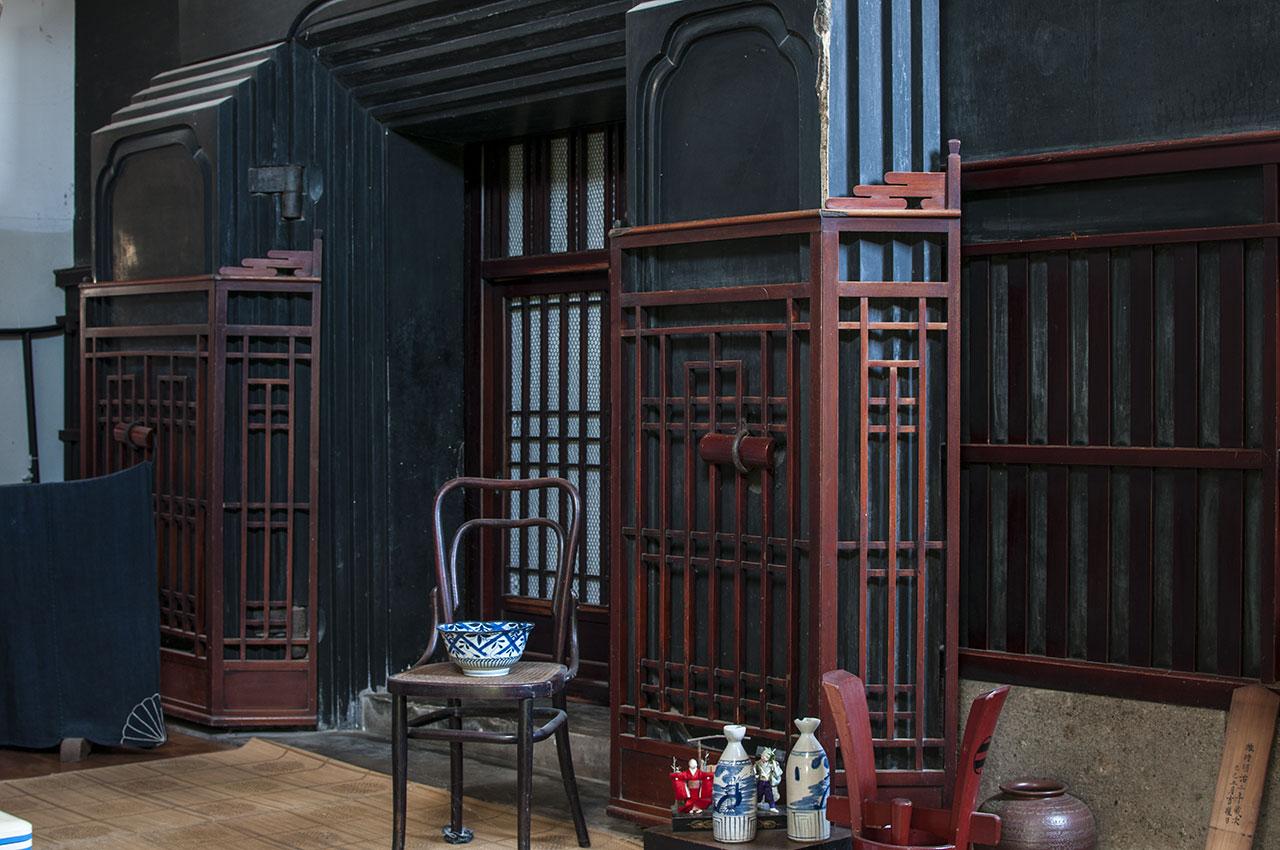 黒漆喰仕上げの内蔵は、朱に塗られた鞘に覆われ重厚な佇まいで鎮座します。